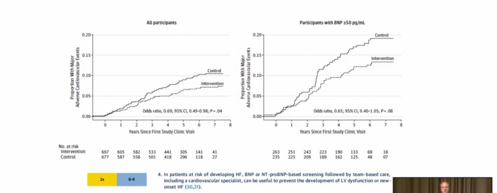 [Sean Pinney] [343.10s] This was a study a substudy of the OMID trial, which looked at those at risk patients against subclinical, no history of, any heart failure symptoms and assigned them to have a screening echocardiogram.